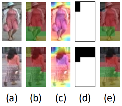 먼저 이미지에서 사람인 부분만 고려하기 위해서 배경과 전경을 구별합니다. 그림 2의 (c)를 보시면, 해당 이미지의 attention map을 뽑았을 때 사람을 포함하는 patch들에 훨씬 크게 집중하고 있음을 확인할 수 있습니다. 이를 이용해 attention map에 K-means clustering을 수행해 (d)와 같이 배경과 전경을 구별하는 mask를 생성합니다. 이를 이미지에 곱해 전경 부분만 고려하도록 합니다.