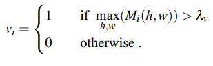$K$개의 local body parts 중 어떤 부위는 가려져있을 가능성도 있습니다. 이를 반영하기 위해서 만약 각 부위에 해당하는 attention map $M_i$의 max값이 특정 값보다 작다면 unvisible하다고 정의합니다. 수식으로 표현하면 다음과 같습니다.