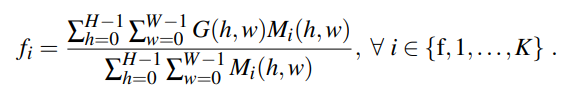 3. $G$에 foreground heatmap $M_f(h,2) : max(M_1(h,w), ... , M_K(h,w))$를 씌워 나온 foreground feature $f_f$