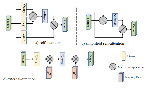 Guo, Meng-Hao, et al. "Beyond self-attention: External attention using two linear layers for visual tasks." arXiv preprint arXiv:2105.02358 (2021).