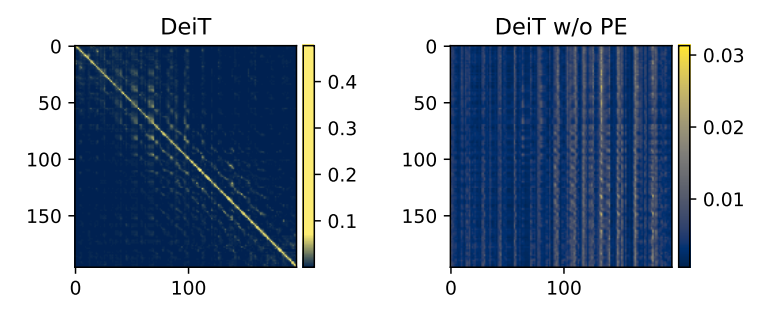 우선 기존 ViT (DeiT)에서의 Positional encoding의 중요성을 확인해보겠습니다.