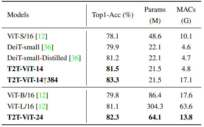 그러고 나면 이 new token들을 backbone transformer의 input으로 사용할 수 있는데요. 그러니까 T2T module의 의의는 patch를 분할하는 과정에서 1. local structure와 2. adjacent patch와의 연관성을 반영하는 역할을 한다고 볼 수 있겠습니다. 정말 간단히 말하면 더 좋은 patch embedding을 만든다고 볼 수 있겠네요.